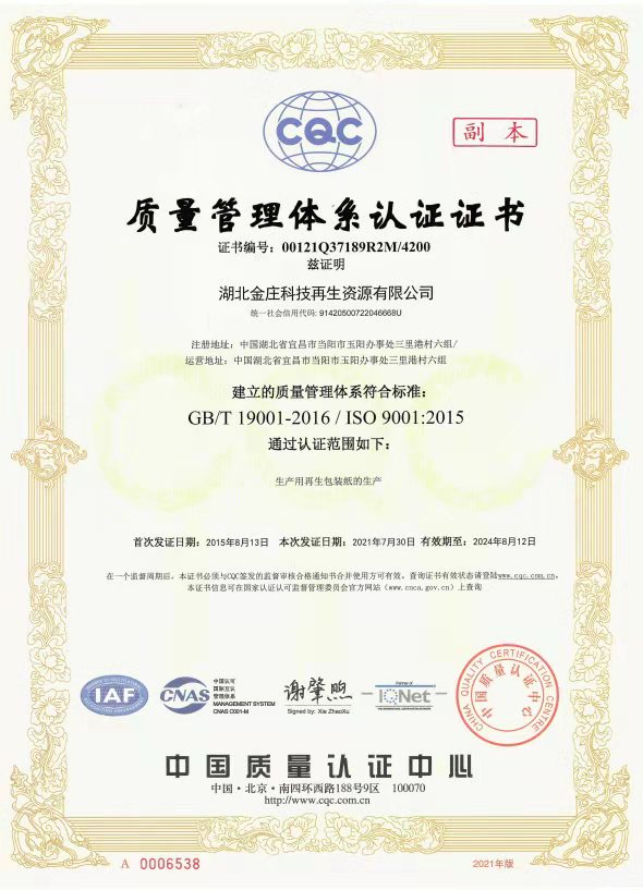 湖北金莊科技再生資源有限公司是以生產再生包裝紙和為工業(yè)園區(qū)集中供熱的資源綜合利用加工服務型企業(yè)。公司位于當陽市金橋工業(yè)園,成立于2000年,注冊資本15486.72萬元,占地面積近400畝,現(xiàn)有員工500余人。 自成立以來,公司始終堅持“誠信、創(chuàng)新、共贏”的經營理念,努力踐行“資源再生綜合利用,堅持綠色能源可持續(xù)發(fā)展,以為社會提供綠色可持續(xù)穩(wěn)定適用的產品為己任”的經營方針。